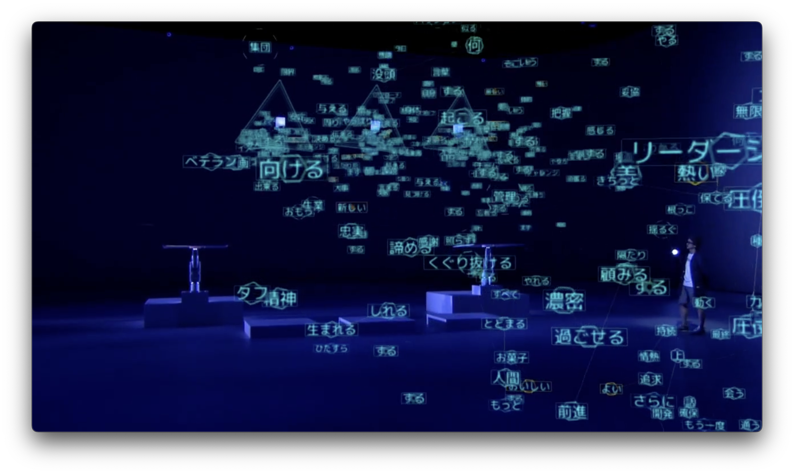Text data from Daito Manabe’s blog was used in the NHK program Professional: Shigoto no Ryugi as analytical material to generate and visualize the question: “What does ‘being a professional’ mean for Daito Manabe?”