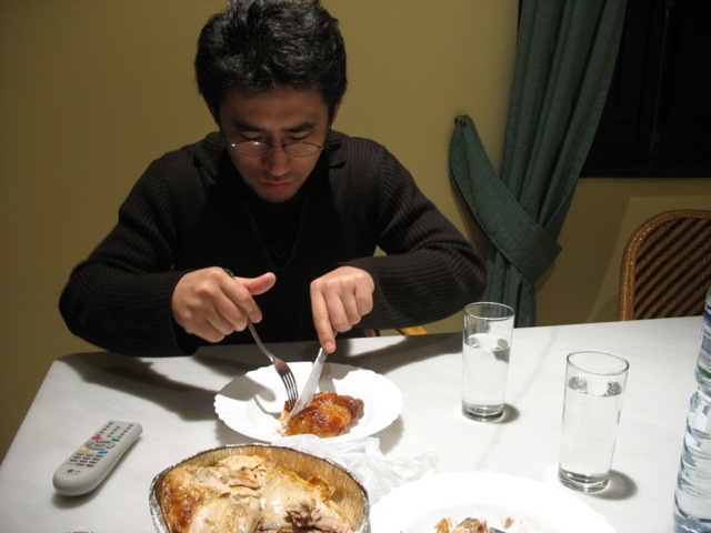 食事が終わった後も部屋でチキンパーティー。
