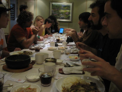 今日もカフェに行き、プレゼンとディスカッション大会。その後、ランチに行き、大量のショートフィルムを観る。20本ぐらい観ただろうか。その後、ラボと言われる制作場に行きDJセッションやらプログラミングやら。僕はMaxパッチやら、勉強中のSCのコードを書く。その様子を代わる代わるDJ達が覗いている。さすがに、MaxもSCも大体の人が知っている模様。今日話した、スペインのDJ君は携帯向けコンテンツのSEをしているらしく過去にvstプラグインの開発をやっていた事もあるそうな。見た目では全然分からんデスな、、。陽気なラティーノだと思っていたのにゴリゴリエンジニアだとは。。夜はディナーに行った後、コンサートへ。なんだかルートと5度しか弾かないベースと、走り気味のドラムが生み出す残念なグルーブの上に中華版レッチリ。疲れていたのもあり、途中で抜ける。食べ過ぎたので、歩いて帰りホテルで日本の人々とチャットで7月の展覧会の打ち合わせ。テキストチャットだと、無駄に時間がかかりますな、。明日は音声チャットで。その後、6月の資生堂仕事。3年ほど前に作ったパッチの使い回し。jitterの物理シミュレーション部分をjavascriptに書き換えつつ、サウンド部分をSCに。